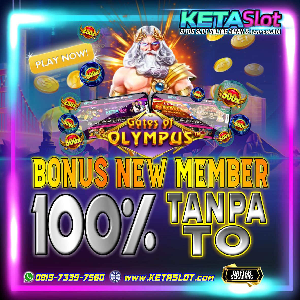 Daftar Akun KetaSlot Bonus New Member 100% Tanpa TO